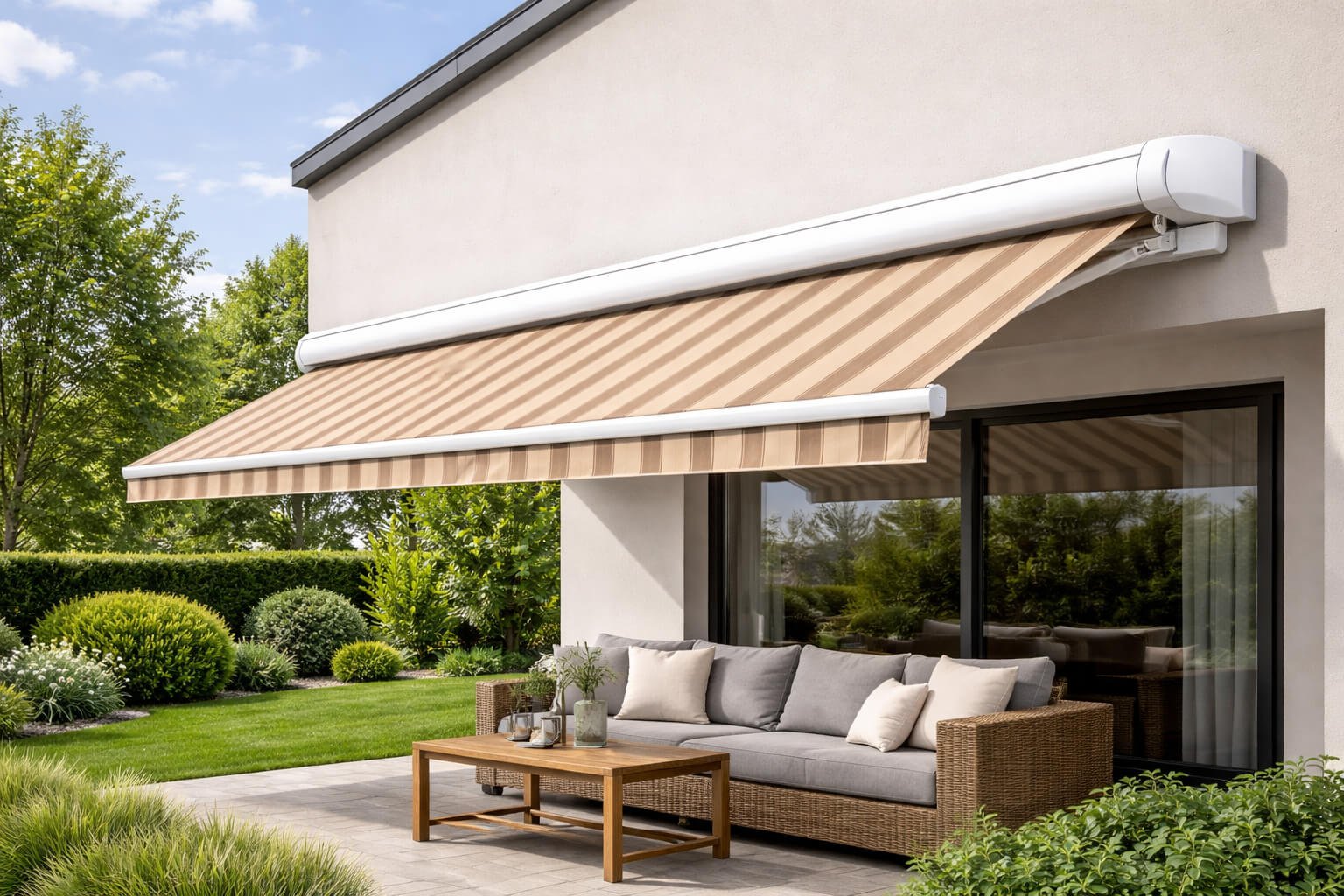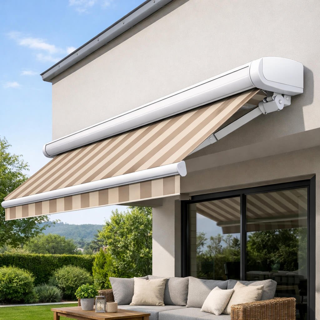 Kaliteli bir kasetli tente, doğru kullanım ve bakım ile ortalama 8–15 yıl arası kullanılabilir.